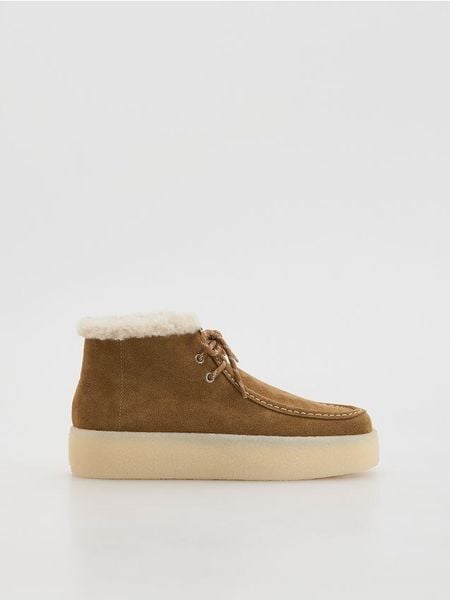 Zamszowe śniegowce ze sznurowaniem – beżowy