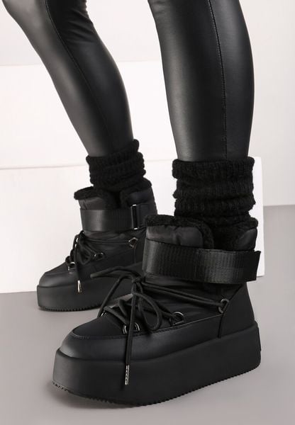 Czarne Śniegowce Vices na Platformie ze Sznurowaniem i Futerkiem Nomicea