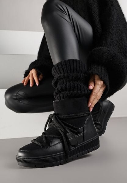 Czarne Wsuwane Śniegowce ze Sznurowaniem i Futerkiem Typu Baranek Meviatesa