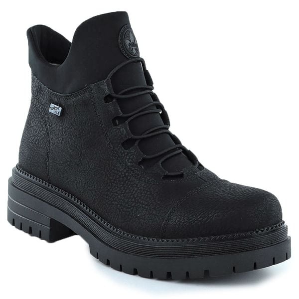 Skórzane wodoodporne botki damskie trapery czarne Rieker Remonte D0E71-00