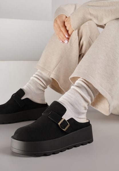 Czarne Niskie Śniegowce na Grubej Podeszwie Zdobione Sprzączką Vetiare