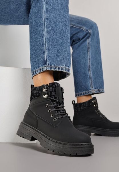 Czarne Sznurowane Śniegowce na Grubej Podeszwie ze Ściągaczem Tintoriae