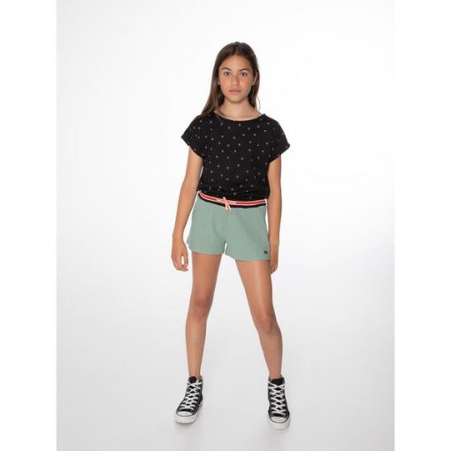 Zielony Komplet Krótki Top z Marszczoną Talią Szorty z Falbanką i Gumką w Pasie Nestasie