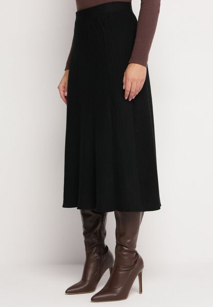 Czarna Dzianinowa Spódnica Midi z Gumką w Pasie i Ozdobnym Tłoczeniem Rembona