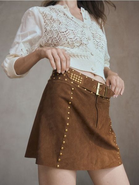 Spódnica o długości mini, wykonana ze skóry naturalnej.
