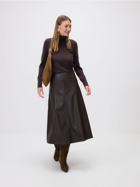 Spódnica o lekko rozkloszowanym kroju, wykonana z imitacji skóry.