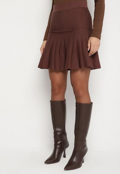 Brązowa Rozkloszowana Spódnica z Wiskozą i Wysokim Stanem Salinatia