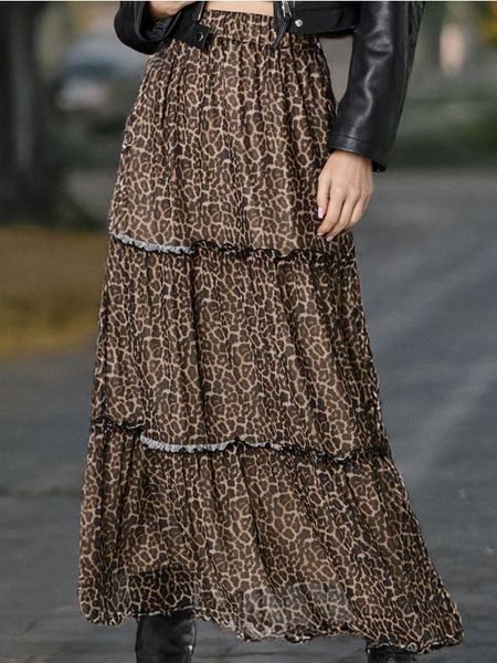 Sinsay – Spódnica – wielobarwny – elastyczna gumka w pasie,dół z falbanami,ozdobne marszczenia,modny print w panterkę