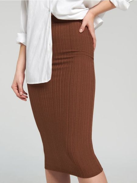 Sinsay – Prążkowana spódnica midi – brązowy –