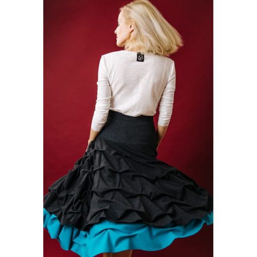 Długa spódnica z dzianiny uszyta z pełnego koła.Połączenie szarości i pieknego turkusu powoduje, że spódnica spieniona jest doskonała zarówno na wyjątkowe okazje, jak i do codziennego użytku. Pasuje do szpilek, do glanów i do pantofli. Dwa pełne, nałożone na siebie koła powodują, że spódnica kręci się naprawdę spektakularnie.Bawełniana dzianina jest miękka w dotyku, nie gniecie […]