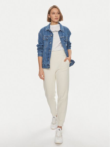 Calvin Klein Spodnie dresowe Micro Logo K20K206632 Écru Regular Fit