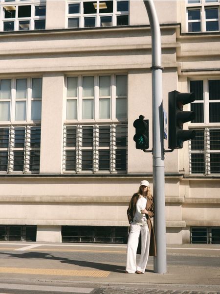 Spodnie o swobodnym kroju, wykonane z bawełnianej dzianiny.