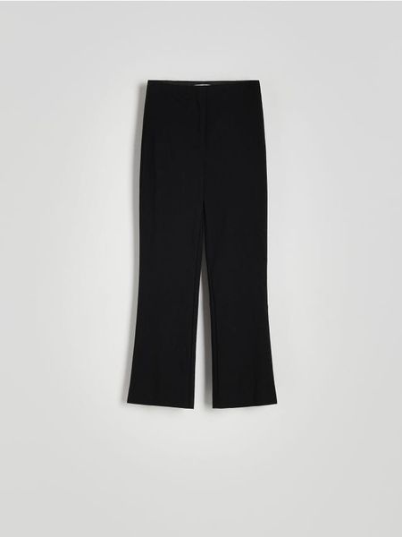 Spodnie o kroju flare, wykonane z tkaniny z wiskozą.