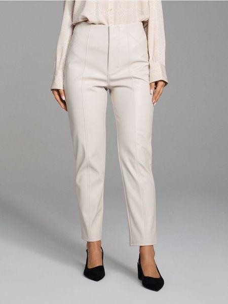 Sinsay – Spodnie z imitacji skóry – kremowy –