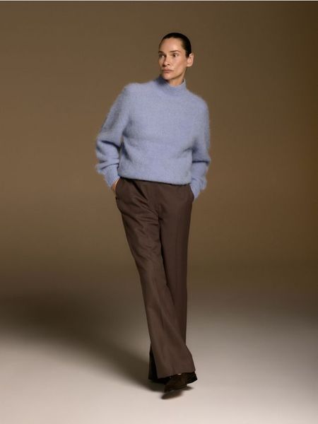Spodnie o prostym kroju, wykonane z tkaniny z wełną.