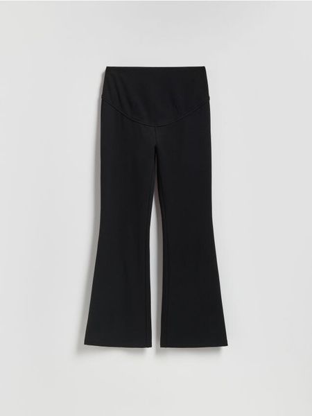 Spodnie typu flare, wykonane z dzianiny z wiskozą.