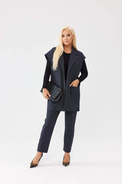 Granatowy komplet Liora – spodnie z gumką + kamizelka z kontrastowymi detalami PLUS SIZE XXL OVERSIZE JESIEŃ