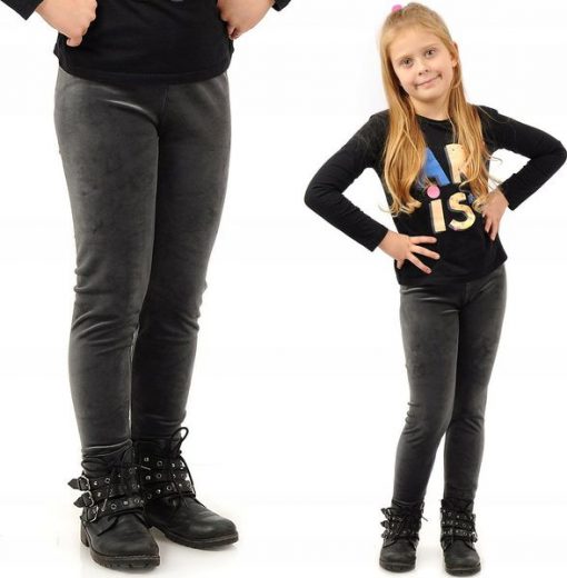 Legginsy dziewczęce Welurowe Elastyczne Spodnie Getry Welur Grafitowe 122