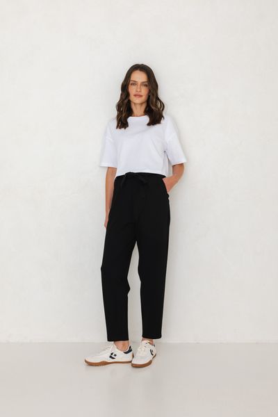 Czarny Komplet Spodnie o Szerokim Kroju i Bluzka Ozdobiona Wiązaniem Halomia