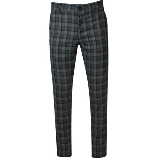Spodnie z Elastanem, Szare w Kratkę, Casualowe, Zwężana Nogawka, Męskie -RIGON