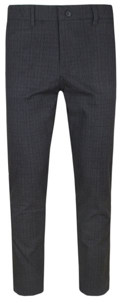 Spodnie Męskie, Granatowe, Casualowe, w Kratkę, Zwężane, Chinosy z Elastanem -RIGON