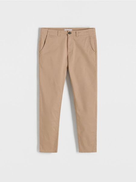 Spodnie typu chino o dopasowanym kroju, wykonane z bawełny.
