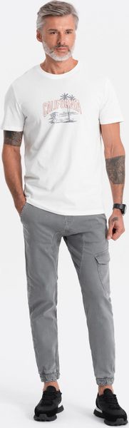 Ombre Spodnie męskie JOGGERY z kieszenią cargo – szare V4 OM-PADJ-0112 L