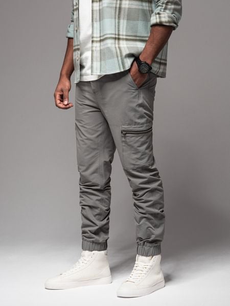 Spodnie męskie z kieszeniami cargo i ściągaczem na dole nogawki - szare V4 - Rozmiar: XXL