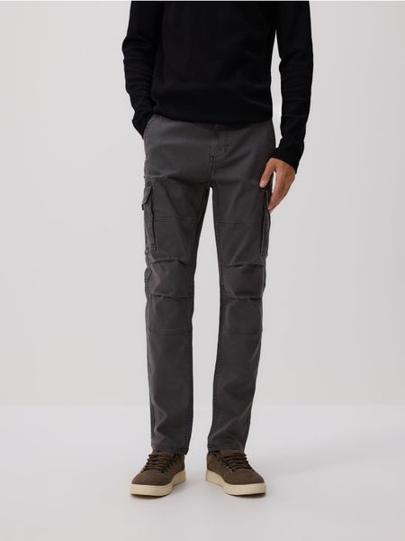 Spodnie typu cargo o dopasowanym kroju, wykonane z tkaniny z bawełną.
