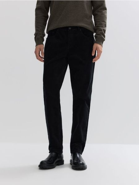 Spodnie o dopasowanym kroju, wykonane ze sztruksowego materiału.