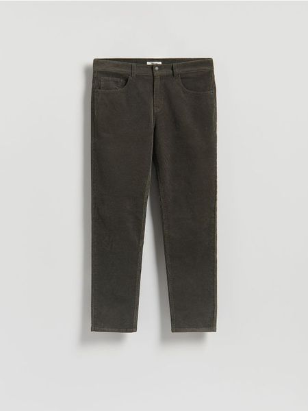 Spodnie o dopasowanym kroju, wykonane ze sztruksowego materiału.