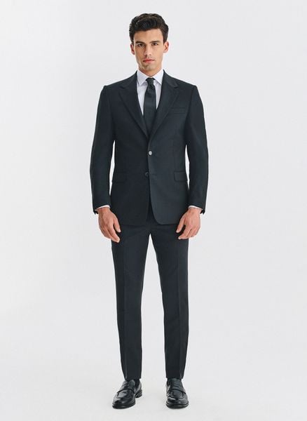 Wełniany garnitur męski – Pako Lorente. Czarny garnitur męski. Skład: 100% wełna. Fason Slim. Biznesowy garnitur. Premium.