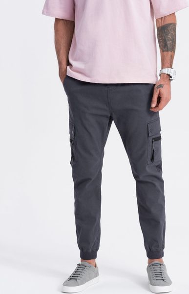 Spodnie męskie JOGGERY z zapinanymi kieszeniami cargo - grafitowe V3 OM-PAJO-0123 - XXL