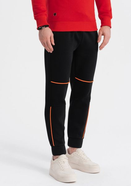 Ombre Spodnie męskie dresowe z kontrastowymi przeszyciami - czarne V1 OM-PASK-0145 L