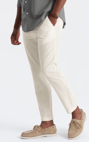 Ombre Podwijane męskie spodnie chino z dodatkiem lnu kremowe V2 OM-PACP-0198 M