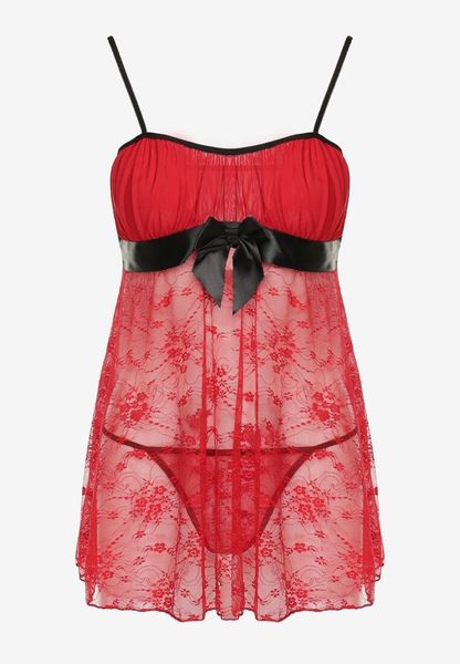 Czerwona Koronkowa Koszula Nocna z Wbudowanym Biustonoszem i Stringami Perunia