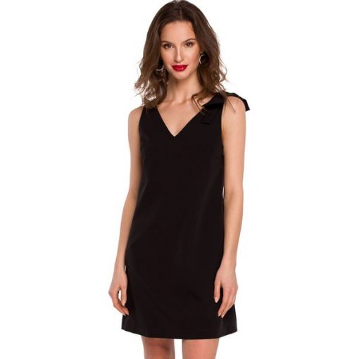Sukienka trapezowa mini z dekoltem V na szerokich ramiączkach czarna