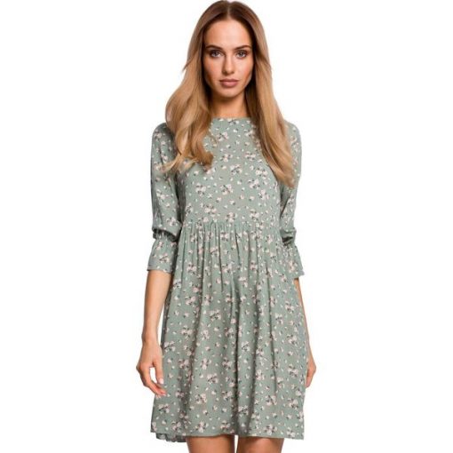 Sukienka boho rozkloszowana mini z wiskozy w kwiaty zielona