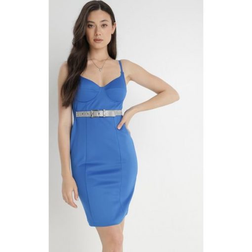 Niebieska Sukienka z Paskiem Naesassa