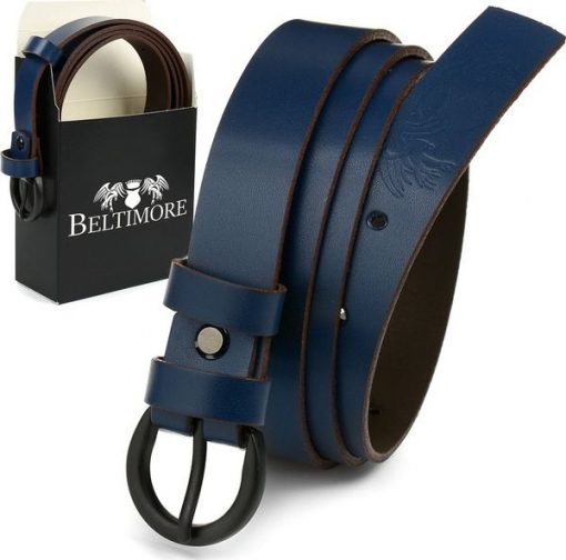 Beltimore Skórzany pasek damski do spodni sukienki Beltimore granatowy A53