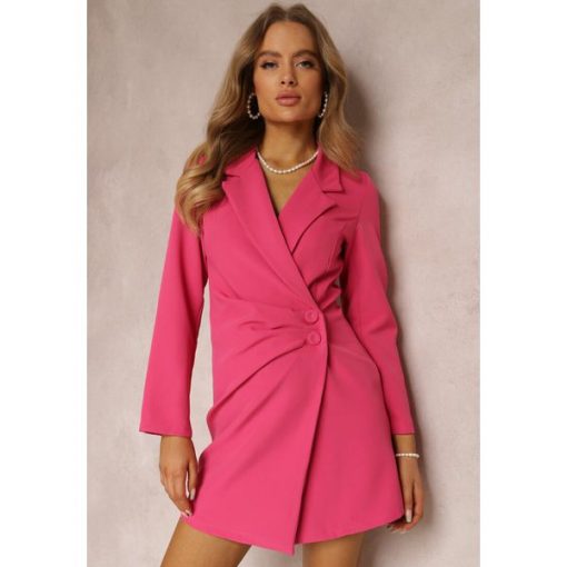 Sukienka Semiche w koktajlowym stylu o długości mini. Kopertowy fason o kroju marynarki to hit sezonu! Elegancka góra z kołnierzykiem i trójkątnym dekoltem. Długi, prosty rękaw. Modne drapowanie na wysokości talii i zapięcie na dwa guziki w pasującej kolorystyce. Bez podszewki. Ta krótka sukienka marynarka prezentuje się idealnie w duecie z sandałami na szpilce lub […]