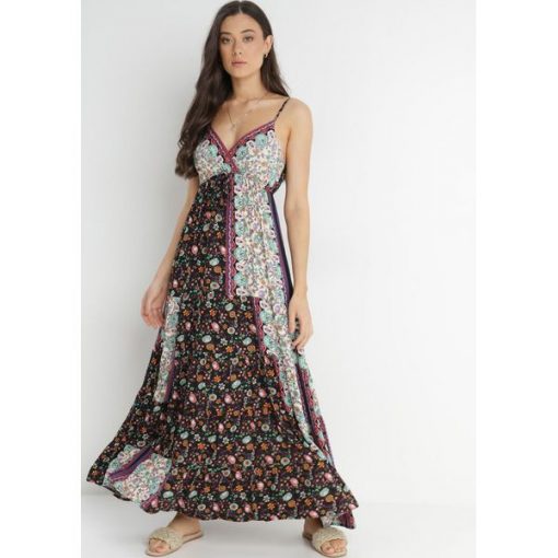 Sukienka Olynome w patchworkowym stylu. Model z głębokim, kopertowym dekoltem. Zawieszona na cienkich, regulowanych ramiączkach. Długość maxi z falbanką na dole. Nie posiada podszewki. Wykonana z lekkiej wiskozy. Lekko rozkloszowana. W pasie wszyta gumka, która po rozciągnięciu mierzy: S/M = 93 cm, L/XL = 97 cm. Ta letnia sukienka sprawdzi się idealnie w stylizacji boho […]