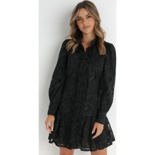 Sukienka Toppey o długości mini, zakończona na dole uroczą falbanką. Taliowana, subtelnie uwydatnia atuty sylwetki. Wykonana z tkaniny dekorowanej ażurowymi wstawkami. Wokół szyi stójka zakończona koronkową tasiemką. Zapinana z przodu na rząd guzików. Długie, lekko bufiaste rękawy. Wyposażona w podszewkę. Sukienki w stylu boho to najgorętszy trend tego sezonu. Sukienka Toppey to must-have w Twojej […]