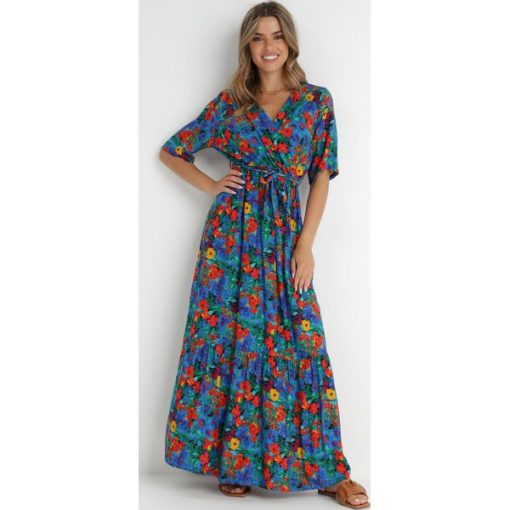 Niebiesko-Zielona Sukienka z Wiskozy Cliera