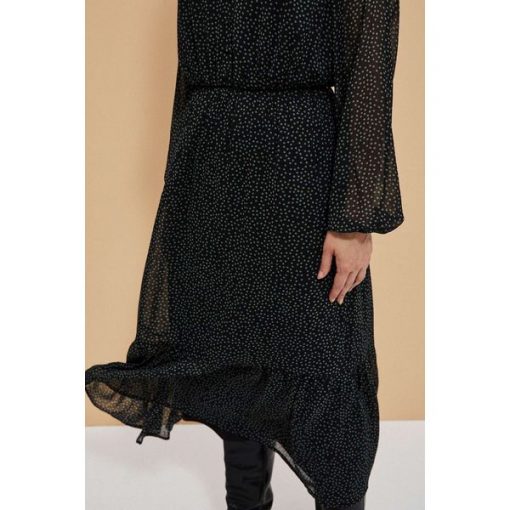 100%POLIESTER 100%POLIESTER, SUKIENKA, czarny, zielony, kropki, poliester, z podszewką, pasek, rozszerzane rękawy, guziki, falbana, marszczenia, szyfonowa, casual, taliowana, rozkloszowana, do pracy, na specjalną okazję, na co dzień, w serek ( V neck), gu