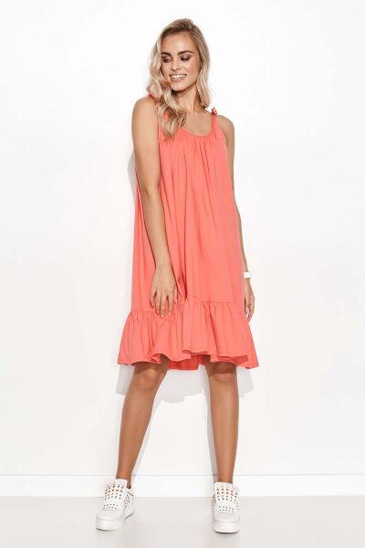 Bawełniana Sukienka na Cienkich Ramiączkach – Koralowa