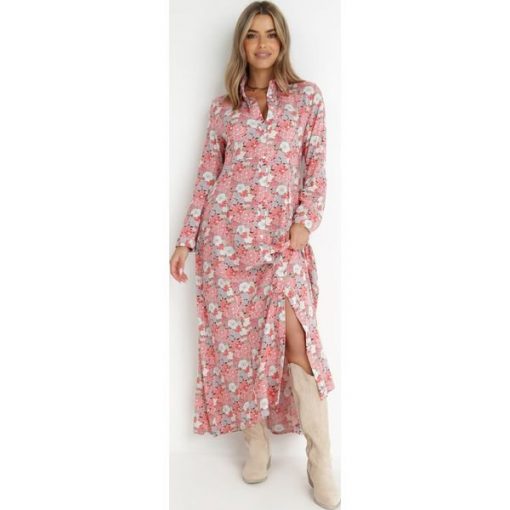 Różowo-Czerwona Sukienka Koszulowa Fabillus