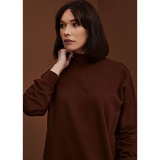 Brązowa Midi Sukienka z Golfem o Pudełkowym Kroju i Długimi Rękawami ze Ściągaczami Yvonnena