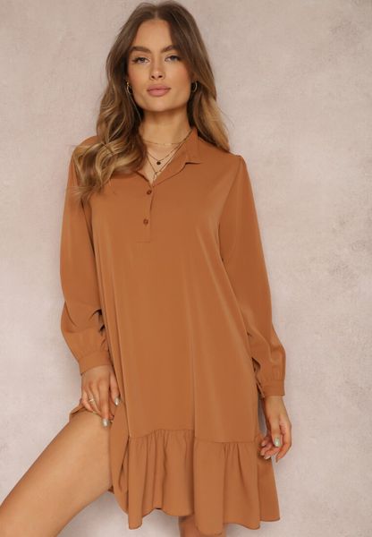 Jasnobrązowa Sukienka Pudełkowa Oversize Neki
