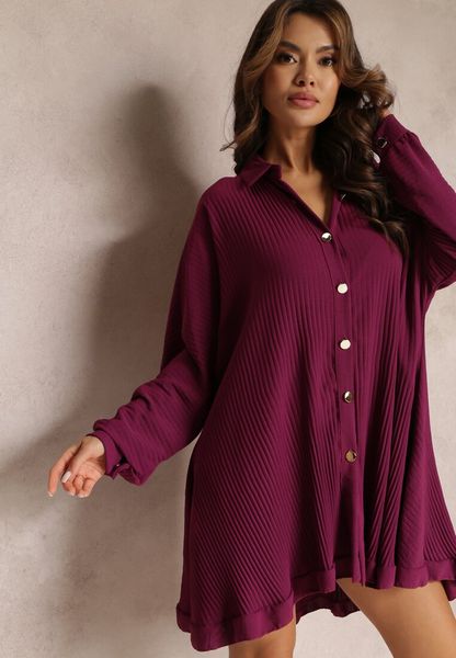Fioletowa Sukienka Koszulowa Plisowana Giiphi